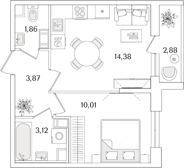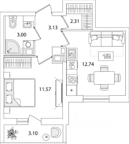 1705995 Тихая уютная квартира, в уникальном проекте Комфорт-класса ЖК "Английская миля" с прекрасными, интеллигентными соседями по лестничной площадке.