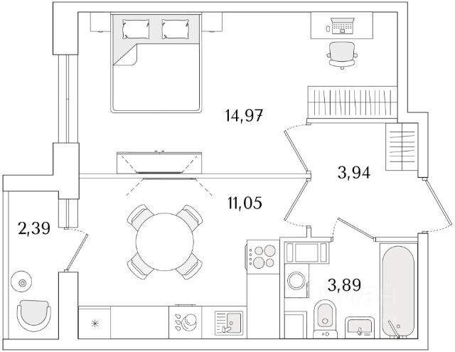 В продаже также есть большая кладовка в цокольном этаже, площадью 5,52 м, с тремя кирпичными стенами.