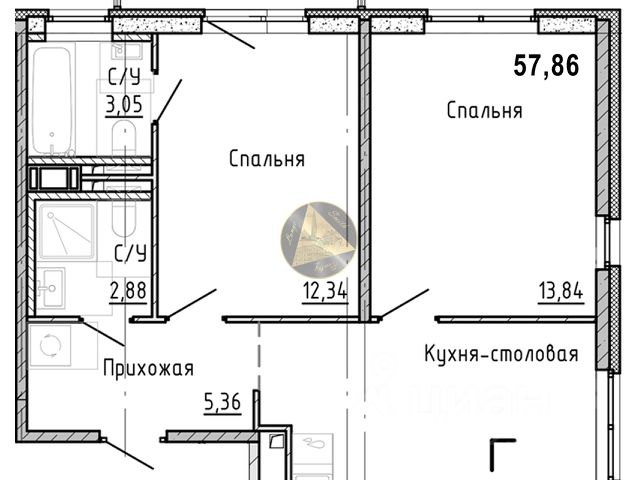• Площадь: 32,5 кв. м. Оптимальная площадь для комфортного проживания одного человека или молодой пары.