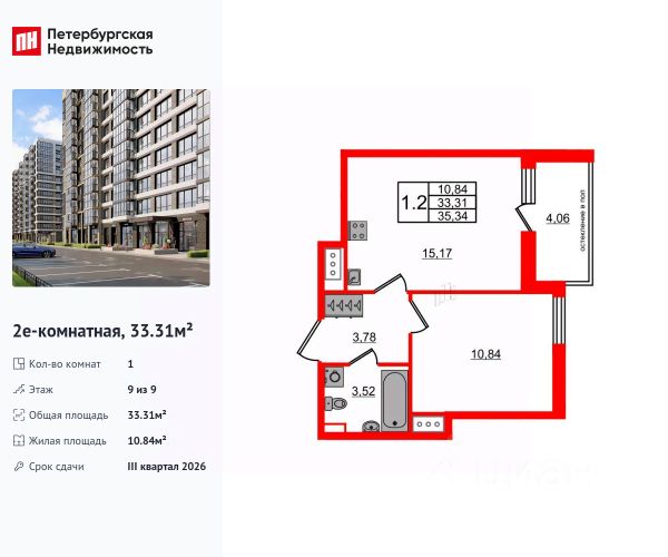 • ✓ В базе Циан 1 1-комнатных квартир на последнем этаже в территории Предпортовая в Санкт-Петербурге