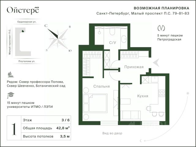 Продаётся 1-комнатная квартира в ЖК "Нева Резиденс" на 8 этаже. Общая площадь составляет 32.80 кв. м. Квартира без отделки. Жилой комплекс "Нева Резиденс" располагается по адресу Санкт-Петербург, Петроградский. Нева Резиденс - премиальный проект в центре Санкт-Петербурга, расположен в живописной локации с европейской атмосферой и собственной благоустроенной набережной. Расположение: • 1 минута пешком до Петровского пруда и сквера; • 3 мин на авто до Крестовского острова; • 8 мин на авто до станции метро "Чкаловская"; • 8 мин на авто до станции метро "Крестовский остров"; • 9 мин на авто до ЗСД; • 10 мин на авто до Стрелки В.О. и исторического центра города; • 24 мин на авто до Невского проспекта. Внутренняя территория комплекса полностью пешеходная, уютное пространство для отдыха детей и взрослых - большое внимание уделено ландшафтному дизайну, проработке пеших маршрутов, оформлению тематических зон. Местом прогулок жителей комплекса станет благоустроенная набережная, исполненная по уникальному проекту с озеленением и устройством малых архитектурных форм. Дизайн дворов предполагает создание искусственных холмов, высадку кустарников, цветников, крупномерных деревьев. Рядом расположился живописный Петровский парк с прудом. В нескольких минутах езды Петроградская сторона и исторический центр, через мост - Крестовский остров с огромной парковой зоной и аттракционами. Из подземного паркинга на лифте можно подняться на нужный этаж прямо к дверям квартиры. Преимущества: • Широкие окна, от 3м; • Фильтры тонкой очистки воды; • Система "Умный дом"; • Сквозные парадные с выходом во двор, безбарьерная среда; • 5-ти ступенчатая система очистки воды; • Повышенная звукоизоляция между квартирами; • Балконы и лоджии с теплым остеклением. Успейте приобрести квартиру на выгодных условиях! Чтобы узнать подробности, обращайтесь за консультацией по телефону.
