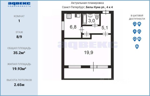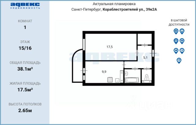 • ✓ В базе Циан 1 1-комнатных квартир на последнем этаже на улице Стародеревенская в Санкт-Петербурге