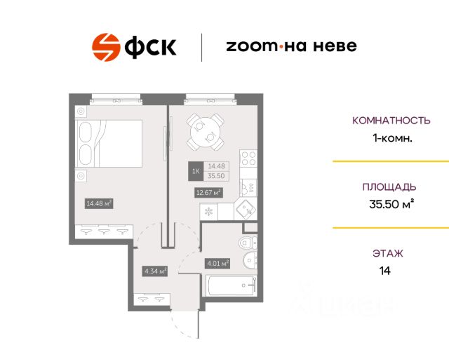 Цена со скидкой до 30% в прямой продаже от застройщика — только в этом месяце. При покупке апартаментов - паркинг за полцены. На все апартаменты действует беспроцентная рассрочка. Купите на распродаже! Покупка недвижимости в Zoom на Неве сейчас со скидкой до 30% позволит через 2 года получить доход до 6 300 000 руб. Роскошные виды на Неву. 1-к апартамент в комплексе класса бизнес-лайт Zoom на Неве на 14-м этаже. Общая площадь 38,7. Без отделки. Zoom на Неве расположен в новом месте силы рядом с центром города на первой линии Октябрьской набережной в Невском районе, всего в 7 км от исторической части Санкт-Петербурга. Большой выбор эргономичных и максимально продуманных планировок позволит каждому найти вариант по душе. Панорамные виды на Неву, благоустроенные дворы, детская игровая комната, подземный паркинг, коммерческие зоны на первом этаже, это и многое другое делает Zoom на Неве идеальным местом для жизни. Особенности: - Панорамные виды на Неву и город; - 10 мин. до Парка Строителей, 15 мин. до Лондон-молла, Ленты, Максидома, 15 мин. до метро "ул. Дыбенко", 12 мин. до КАД, 10 мин. до центра; - Единая архитектурная концепция. Сдержанные и монументальные фасады в неоклассическом стиле; - Парадный лобби для жильцов. Единый вход в комплекс с администратором, зоной ресепшн и охраной, зоной для бесконтактной доставки посылок и еды; - Подземный отапливаемый паркинг с доступом из парадной; - Доступно 3 варианта отделки на выбор: черновая, предчистовая (White Box) и чистовая; - Зоны отдыха для взрослых и детей, Wi-Fi-покрытие во дворе и в паркинге, зоны для питомцев, арт-объекты и много другое. В шаговой доступности вся необходимая инфраструктура от детских садов и школ до супермаркетов и салонов красоты; - Все происходящее контролируется видеокамерами, а покой внутренней территории и безопасность ваших детей гарантируется полным отсутствием транспорта во дворах в концепции "без машин".