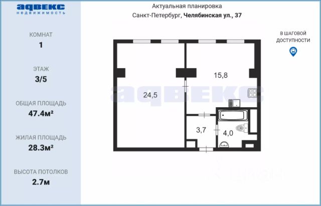 • ✓ В базе Циан 1 1-комнатных квартир на последнем этаже на улице Кибальчича в Санкт-Петербурге