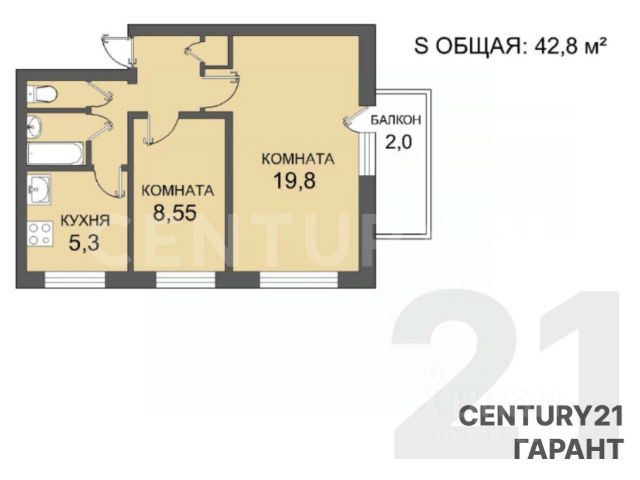 - Санузел раздельный (никаких компромиссов между душем и троном). Потолки 2,7 м — головой не заденешь, даже если вы баскетболист.