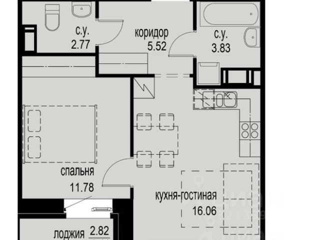 • ✅ Минимальная площадь: 43,3 м²