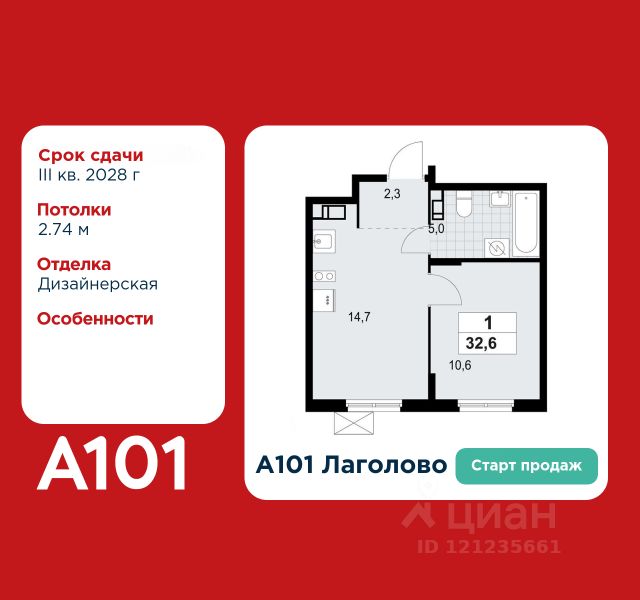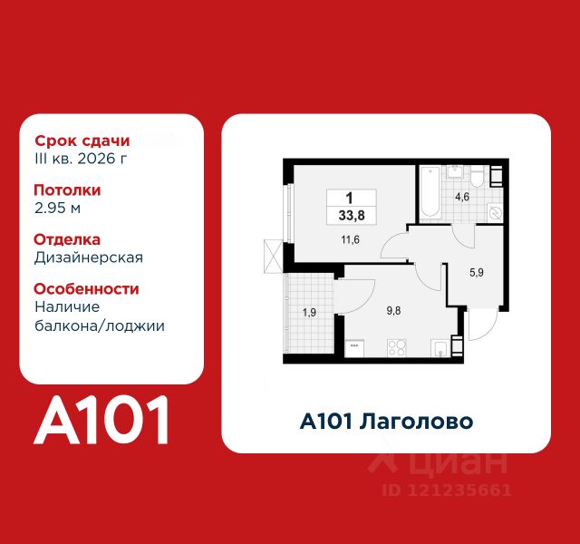 ПЕРЕУСТУПКА ПРАВА! Продаётся квартира в новостройке — ЖК "А101 Лаголово" , корп. 1.1 Общая площадь квартиры — 34,6 кв. м., этаж 3 из 9, секция 1 Без отделки Тип проекта, по которому построен дом — монолит Компания-застройщик — ГК "А101". Срок сдачи — 4-й квартал 2025 ОТДЕЛКА Квартира передается без отделки. Благодаря тому, что в данном типе отделки стены не возводятся, вы сможете создать удобную планировку и самостоятельно организовать зонирование комнат. ОСОБЕННОСТИ ПЛАНИРОВКИ Мезонин - полуэтаж с большим количеством естественного света. На втором уровне можно организовать спальню или кабинет. Патио - это собственный дворик или терраса с выходом из квартиры во двор, огорожен живой изгородью, пол надежно защищен бетонной плитой. ПАРАДНАЯ В каждой парадной предусмотрены места для хранения велосипедов и колясок, гостевой санузел, лапамойка (место для мытья домашних животных или колес велосипедов) и удобная зона ожидания для гостей. ДВОРЫ И ОКРУЖЕНИЕ Просторные дворы свободны от машин и закрыты от посторонних. Большую часть комплекса займут благоустроенные зелёные зоны, теневые сады и городские общественные пространства с развитой тротуарной сетью и велодорожками. Каждый дом оборудован системами видеонаблюдения и контроля доступа. "А101 Лаголово" - современный город у подножия знаменитых Дудерговских высот, в объятиях чистейших озёр и зелёных живописных массивов, наполненный всем необходимым для счастливой жизни. ИНФРАСТРУКТУРА. Мы занимаемся комплексным освоением территории. Наш приоритет - доступность всех сервисов для счастливой жизни. 1. Лаголово-город 15-ти минутной доступности. Вся необходимая инфраструктура: магазины, салоны красоты, образовательные учреждения, медицинские центры находятся в 15-ти минутах пешей прогулки от любой точки жилого комплекса. Это позволяет не тратить время на долгие перемещения. 2. Представьте идеальный город, где ребенок может спокойно играть, а пожилой человек наслаждаться заслуженным отдыхом. Жилая среда нашего комплекса может комфортно использоваться как 8-летним ребенком, так и 80-летним пожилым человеком. Дома, улицы, общественные пространства, тротуары спроектированы с заботой о людях разных возрастов. 3. Мы активно развиваем авторскую образовательную экосистему "Лёрнити". Она включает строительство 8 современных детских садов (2000 мест) и 3 школ (2945 учащихся). Мы учим родителей гармонично общаться с детьми, помогаем малышам подготовиться к школе, а подросткам - выбрать будущую профессию и развить таланты.