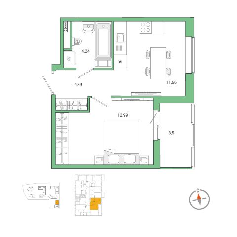 Продаётся 1-комн. квартира площадью 40,37 кв.м на 3 этаже 15 этажного дома (Корпус 7, Секция 1) проекта ПИК Янинский лес. Светлый просторный подъезд на уровне земли, функциональная планировка, большие окна, c отделкой. Жилой квартал "Янинский лес" возводится в районе Янино-1 Ленинградской области. Автобусная остановка находится в 3 минутах пешком. Проект расположен вплотную к восточной границе Санкт-Петербурга - в 4 минутах от КАД. До метро "Ладожская" - 23 минуты на общественном транспорте. До исторического центра города можно доехать за 25 минут на автомобиле. "Янинский лес" - масштабный проект из 32 жилых корпусов, где будет всё для комфортной жизни. Здесь предусмотрены надземные паркинги, откроются детские сады, школа и поликлиника. Кроме этого, появятся места, в которых можно проводить свободное время: ледовая арена и торговый центр площадью больше 3000 м². Жилой район строится по всем правилам ПИК-Стандарта: в зелёных дворах-парках появятся современные детские и спортивные площадки, пешеходный бульвар и другие места для отдыха. На первых этажах разместятся магазины, кафе и другие сервисы. Во дворах не будет автомобилей, а для гостей предусмотрены парковочные места. Проект окружают лесные массивы. В пешей доступности находится Ржевский лесопарк: летом там можно гулять и собирать грибы, а зимой кататься на лыжах. Также рядом расположен памятник природы Колтушские высоты - парк с обустроенными экотропами и веломаршрутом. А главное место притяжения местных жителей - озеро с обустроенным местом для пикников. Артикул 914959 (Застройщик ООО "СПЕЦИАЛИЗИРОВАННЫЙ ЗАСТРОЙЩИК"ЭКСТРАГРАД") [cn_sbp_1776469]
