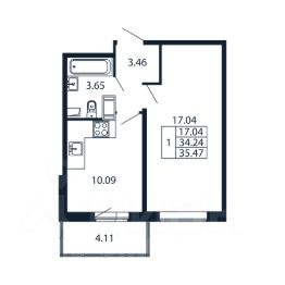 Квартира находится в 12 этажном доме, в Академик Жилой дом 1 на 7 этаже. Общая площадь квартиры 37,70 кв.м.