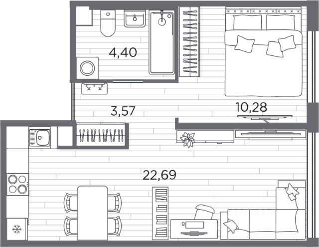 Все это делает квартиру очень удобной для жизни и привлекательной для арендного бизнеса.