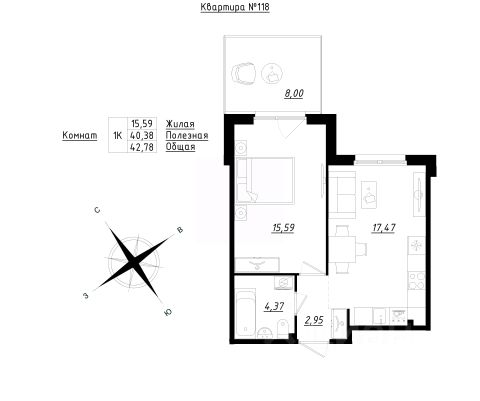 Квартира находится на 4 этаже.