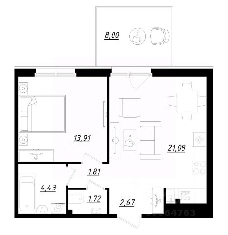 Общая площадь квартиры составляет 31,77 м.