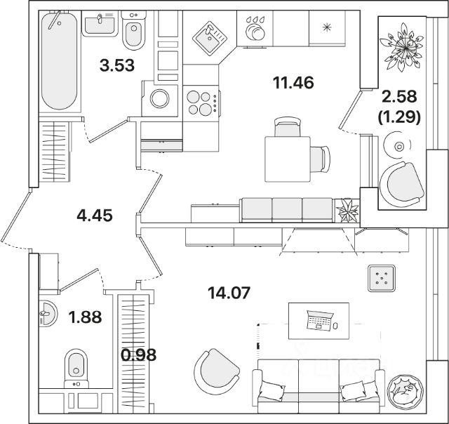 Продаётся 1-комнатная квартира в ЖК "Ручьи" на 21 этаже. Общая площадь составляет 30.90 кв. м. Квартира с чистовой отделкой. Жилой комплекс "Ручьи" располагается по адресу Санкт-Петербург, Красногвардейский. ЖК "Ручьи" - крупный проект комфорт-класса в Красногвардейском районе, на Пискаревском проспекте. В новостройке эргономичные планировки, уютные пешеходные дворы без машин, с детскими и спортивными площадками. Расположение комплекса: • 10 минут до станции метро "Академическая" на автобусе; • 10 минут до ж/д станции "Ручьи"; • 5 минут до КАД на автомобиле. Первая очередь уже заселена, во второй очереди появятся 27 домов. Квартиры передаются с отделкой. Парадные устроены на уровне земли - без ступеней и высоких порогов, а зайти внутрь можно как со стороны двора, так и с улицы. ЛСР построит на территории комплекса школу и два детских сада. Между домами будут обустроены игровые и спортивные площадки с турниками и тренажерами, удобные зоны отдыха для детей и взрослых. Первые этажи отведены под колясочные, магазины и сервисные службы. Здесь есть всё необходимое для комфортной жизни: магазины, аптеки, парикмахерские, пекарни и кофейни, достаточно спуститься на лифте во двор своего дома. Вокруг квартала пройдет велодорожка. Преимущества комплекса: - Большой выбор семейных квартир с просторной кухней-гостиной - Рядом Муринский и Пискаревский парки - Безбарьерная среда - Развитая социальная инфраструктура - Двор без машин Успейте приобрести квартиру на выгодных условиях! Чтобы узнать подробности, обращайтесь за консультацией по телефону. 1-комнатная квартира в готовой новостройке в округе Полюстрово в Санкт-Петербурге.