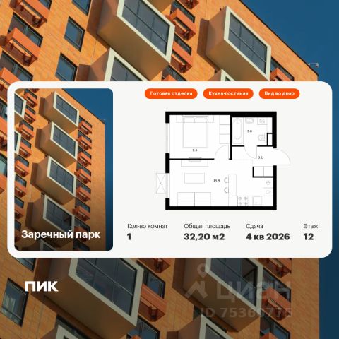 Продаётся 1-комн. квартира площадью 36,08 кв.м на 2 этаже 24 этажного дома (Корпус 5, Секция 2) проекта ПИК Заречный парк. Светлый просторный подъезд на уровне земли, функциональная планировка, большие окна, c отделкой. Жилой квартал "Заречный парк" расположен в районе Новое Девяткино Ленинградской области. В 7 минутах на автомобиле - станция метро "Девяткино", до КАД - 10 минут на машине. В 2026 году будет достроена шестиполосная трасса в обход Мурино, примыкающая к Пискарёвскому проспекту. Она станет дополнительным выездом на КАД для жителей "Заречного парка". Проект включает восемь домов высотой от 15 до 24 этажей, три многоуровневых паркинга, детский сад и школу. В зелёных дворах-парках будут оборудованы современные детские и спортивные площадки, обустроены места для отдыха. На первых этажах разместятся магазины, кафе и другие сервисы. Планировки продуманы так, чтобы каждый квадратный метр жилой площади можно было эффективно использовать. Все квартиры сдаются с готовой отделкой. Артикул 1021771 (Застройщик ООО "СПЕЦИАЛИЗИРОВАННЫЙ ЗАСТРОЙЩИК ИНВЕСТАЛЬЯНС") [cn_sbp_1822120] Продам 1-комнатную квартиру в ипотеку в новостройке рядом с метро Девяткино.