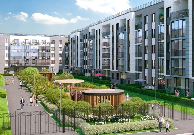 В составе квартала: 30 пятиэтажных домов, школа со спортивным стадионом, 2 детских сада с бассейнами, наземные и подземные паркинги, центральный зеленый бульвар с рlаy hub и местами отдыха. Территория квартала зонирована таким образом, чтобы автомобильные и пешеходные потоки и не пересекались. Прогулочные и велосипедные дорожки отделены от автомобильных проездов зелеными насаждениями. Дворы закрыты для машин.