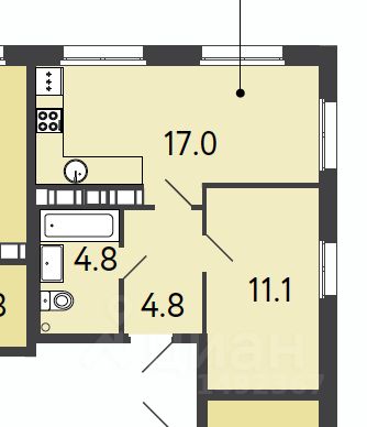 - Просторная, наполненная светом, кухня-гостиная - 18,3 кв.м, 3 увеличенных окна, выходящих на две стороны