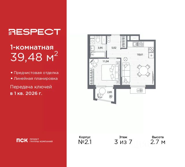 1-комн. квартира от застройщика с предчистовой отделкой в ЖК "RESPECT" на 3 этаже. Общая площадь: 35.99 кв.м., жилая: 11.98 кв.м., площадь просторной кухни-столовой: 14.5 кв.м. Все окна выходят на одну сторону. В квартире один балкон, один совмещенный санузел. Высота потолков 2.7 м. Квартира будет сдана с отделкой WHITE BOX, в которую включены следующие виды работ: - заливка стяжки; - установлена система отопления квартиры; - подготовлены потолки; - все стены выровнены, загрунтованы и отштукатурены; - электрическая проводка разведена по комнатам. Квартира будет готова к чистовой отделке. Дом монолитный, многоподъездный, переменной этажности, от 10 до 13 этажей. Квартира находится в 1-й секции высотой 13 этажей в корпусе 3.2. На этаже 5 квартир. В подъезде 1 пассажирский и 1 грузовой лифт. Начало строительства - 3 квартал 2025 года. Окончание строительства - 4 квартал 2027 года. Оформление сделки по договору долевого участия. В шаговой доступности от жилого комплекса находятся станции метро (расстояние по прямой): "Лесная" (800 м), "Площадь Мужества" (1.4 км), "Выборгская" (1.9 км), также недалеко от этого корпуса расположены станции метро: "Академическая", "Политехническая". Жилой квартал "RESPECT" строится на Полюстровском пр, 87, в одной из самых востребованных локаций Петербурга. В 10 минутах пешком - метро "Лесная" и в 10 минутах на транспорте - Петроградская сторона. Высота домов от 7 до 13 этажей. Квартиры сдаются с отделкой white box и с чистовой отделкой. На территории Respect строится школа на 1125 учащихся и детский сад на 240 мест. Запроектированы собственная газовая котельная, закрытая территория, дворы без машин и подземные паркинги с лифтами. В проекте предусмотрены трапециевидные балконы или остекленные лоджии, которые, с одной стороны, исключают монотонность фасада, являясь декоративными элементами, с другой дополнительным функциональным пространством в квартирах. Цветовая гармония фасадов каждого дома раскрывает характер квартала. Коричневый цвет клинкерного кирпича со структурой водяных штрихов — цвет уюта и безопасности, сдержанности и надёжности. Вентилируемые фасады облицованы клинкерным кирпичом. Его высокая прочность позволяет давать 100 лет гарантии на этот материал. Водопоглощение клинкерного кирпича составляет менее 5%, за счет чего у него высокая теплопроводность и прочность. В квартале запроектированы внутренние закрытые территории дворов домов без доступа автомобилей и безбарьерная среда для велосипедистов и колясок. Предусмотрены IP-домофония с функцией дистанционного открывания калиток и парадных, а также дистанционный сбор показаний счетчиков и мобильное приложение для жителей. Для безопасности жителей квартала - круглосуточное видеонаблюдение и служба охраны. В каждой квартире предусмотрены внешние корзины для кондиционеров. Вся территория квартала будет связана единой концепцией благоустройства, разработанной ландшафтным бюро L.BURO. На эксплуатируемой кровле на уровне первого этажа в домах Купить 1-комнатную квартиру в ипотеку в новостройке рядом с метро Площадь Мужества.