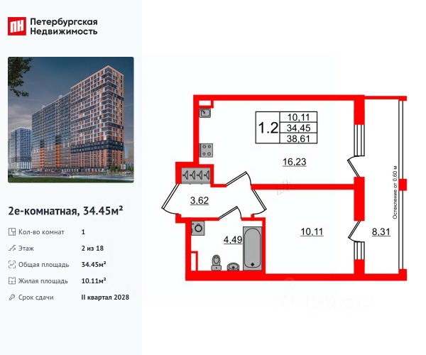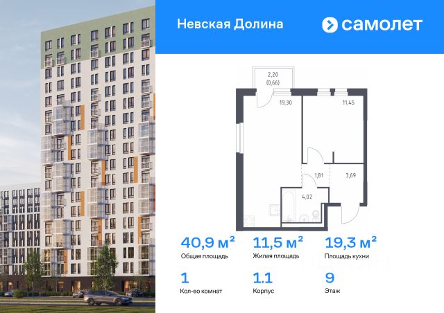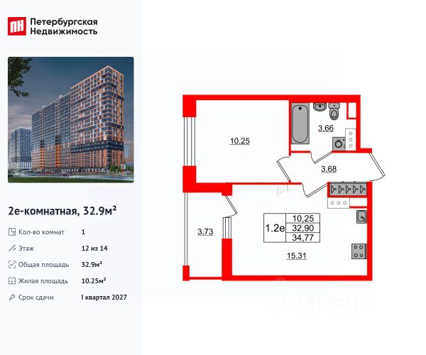 Звоните! Купить 1-комнатную квартиру в ипотеку в новостройке рядом с метро Рыбацкое.