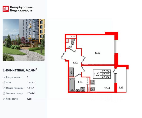Продаётся e2 комнатная квартира (евро) в жилищном комплексе Modum (Корпус 2 секция 6). Общая площадь 49.31 кв. м, площадь комнат 11.38 кв.м. раздельный санузел. Квартира расположена на 4 этаже 12 этажного дома. Сдается с отделкой White-box. Квартал сдан. Квартал бизнес-класса Modum от девелопера Arsenal - три дома этажностью от 6 до 12 этажей, премиальная архитектура, закрытые дворы без машин, оригинальный ландшафтный дизайн во дворы. Подземный паркинг. В ЖК расположен фитнес-клуб с 25-метровым бассейном на 4 дорожки и SPA. В непосредственной близости к кварталу, находится несколько детских садов и школ. 500м до Юнтолоского заказника. Комплекс находится на проспекте Авиаконструкторов 54, Приморский район (м. Комендантский проспект) 1-комнатная квартира в ипотеку в новостройке рядом с метро Старая Деревня.