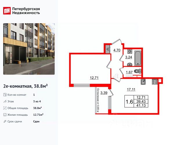 Продается просторная 1-комнатная квартира от застройщика в жилом комплексе "Univer City" в на юге Санкт-Петербурга. До метро можно добраться на транспорте всего за 30 минут. Удобная, классическая, функциональная европланировка, большая кухня-гостиная 17.11 м², просторная прихожая 4.7 м². Общая площадь квартиры - 38.8 м², жилая 12.71 м², высота потолка 2.77 м. Квартира продается с отделкой "NORD LINE WHITE". Что особенного в ЖК "Univer City"? • Малоэтажное строительство • Скандинавские фасады с отделкой керамогранитом, акцентные входные группы • Закрытые внутренние дворы без машин • Пешеходный променад с тематическими зонами, еловый сквер и яблоневый сад • Univer Park, включая SetlSport и SetlKids, площадку для выгула собак и зоны отдыха • Инновационный Лицей Setl с оригинальной архитектурной концепцией и уникальной образовательной средой