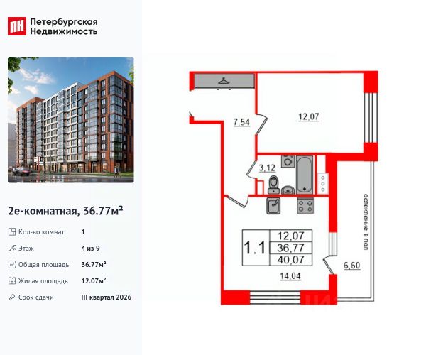 Дом сдан! Выдаем ключи! 1-ком. квартира 136 на 12 этаже в секции 2 Дома SHEPILEVSKIY (Шепилевский) О проекте: Торжественный и величавый, Клубный дом SHEPILEVSKIY (Шепилевский) включает 184 квартиры клубного формата. Дом гармонично вписан в существующий архитектурный контекст Алтайской улицы Московском районе. Из окон большей части лотов открывается захватывающий вид на юг, север и центр Петербурга. Максимальный обзор на город достигнут и за счет больших окон высотой от 2,5 до 5 метров. SHEPILEVSKIY (Шепилевский) предлагает новое видение жизни в премиальном объекте с особым акцентом на комфорт и технологичность жилой среды. В проекте Shepilevskiy более 100 передовых решений и девелоперских идей. Среди них единая акустическая система в общественных пространствах, система "умный дом", усиленная звуко- и теплоизоляция, бесконтактный доступ в дом Face Key, считыватели номеров авто в двухуровневом подземном паркинге и многое другое. 184 квартиры; 25 этажей; Лаундж-терраса под открытым небом на 24 этаже (72 метров!); 400 м2 общественных пространств; Парадное лобби; Кинозал; Комната для спорта; Коворкинг для деловых переговоров; Детский клуб; 2 800 м2 площадь авторского сквера; 4 минуты от м. Московская; ELEMENT создаёт инновационные жилые и коммерческие объекты в Санкт-Петербурге и Москве, которые устанавливают новые стандарты эффективной жизни в мегаполисах. Продается 1-комнатная квартира в ипотеку в новостройке в районе Московский в Санкт-Петербурге.
