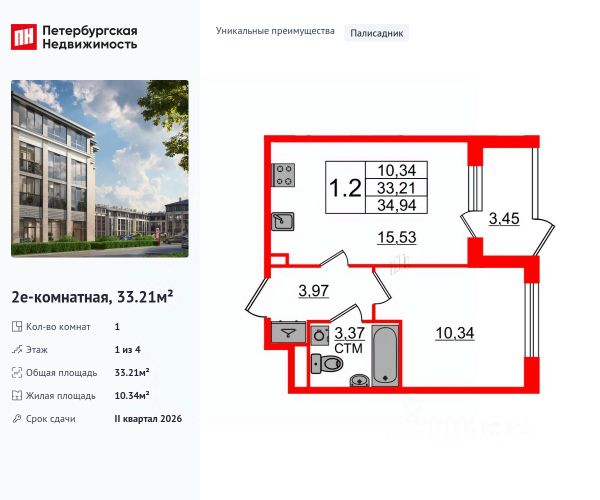 Жилой комплекс комфорт-класса находится на южном берегу Финского залива, рядом с дворцово-парковыми ансамблями Стрельны и Петергофа, в окружении дворцово-парковых ансамблей: Стрельна, Константиновский дворец, Петергоф, парк Новознаменка и Сосновая поляна, Шунгеровский лесопарк. Также в ЖК представлены два собственных парка: парадный верхний для спокойного отдыха, нижний для активных занятий. Малоэтажный жилой комплекс: всего 4 этажа, соответствующий стандартам экологичного строительства, энергоэффективности, экономии и комфорта. Более половины квартир с увеличенной высотой потолка: от 3 до 5,5 м. Также есть квартиры с саунами, возможностью установки камина и палисадника. Архитектура ЖК выполнена в единой концепции — имеет строгий вертикальный ритм со светлым невесомым низом и контрастным темным верхом. В фасадах ЖК строгость архитектурных форм сочетается с большим количеством остекления. Природная цветовая гамма в светлых оттенках с горизонтальным рустом. Применение современных трендовых материалов, таких как панели с диоксидом титана, улучшающие микроклимат жилого комплекса. Контрастные темные оттенки придают акцент последним этажам и входным группам коммерческих помещений. 50% квартир High Flat с увеличенными окнами, а значит, больше естественного солнечного света в квартирах и экономия на электроэнергии в светлое время суток. В ЖК используются стекло алюминиевые конструкции остекления лоджий. Темные оттенки оконного профиля, балконов и лоджий придают фасаду выразительность, а большое количество остекления делает квартиры не только светлее, но и визуально просторнее. Дворы в ЖК свободны от машин и огорожены по периметру: приватные уютные дворы-патио, палисадники, площадки для отдыха взрослых, площадка для йоги, детская площадка и спортивная площадка. Интерьеры холлов выполнены в единой стилистике с общим архитектурным решением жилого комплекса. Стены холлов повторяют светлую цветовую гамму фасадов, а детали интерьера и потолок — вторят темным акцентам на фасаде здания. В то же время в холлах больше стекла и металла. Вместе со встроенным освещением они придают интерьеру строгость и лаконичность. В холлах и местах общего пользования будут применяться датчики движения и фотореле, лифты будут оборудованы системой рекуперации энергии. Также в местах общего пользования будут установлены лампы с ультрафиолетовым обеззараживанием. Для детей в ЖК запланированы: школа на 700 мест с бассейном, детский сад на 280 мест с бассейном, детский сад на 75 мест, детские клубы. В цокольном этаже жилого комплекса запланированы кладовые помещения, а также подземный паркинг. Системой видеонаблюдения обеспечены: периметр здания, входы в подъезды, лифтовой холл 1-го этажа, лифтовые кабины, въезд и выезд автостоянки, детские площадки. Продам 1-комнатную квартиру в ипотеку в новостройке в районе Петродворцовый в Санкт-Петербурге.