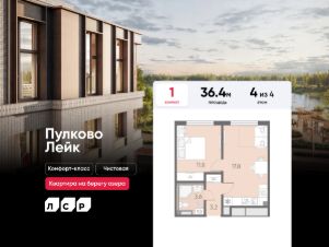 Цена действует при 100% оплате и на определенные ипотечные программы. Подробности — в отделе продаж по телефону. Продается 1-комнатная квартира в ЖК "Пулково Лейк" на 4 этаже. Общая площадь составляет 38.20 кв. м. Квартира с чистовой отделкой. Жилой комплекс "Пулково Лейк" располагается по адресу Санкт-Петербург, Московский. Пулково Лейк - проект малоэтажной застройки на берегу озера на границе Московского и Пушкинского районов. Дома высотой всего 4 этажа, квартиры от уютных студий до трехкомнатных квартир для большой семьи. Широчайший выбор планировок, включая квартиры с мастер-спальнями, патио, каминами, саунами, двухуровневые квартиры. Школа, детские сады, парк на берегу озера и выезды на Пулковское и Петербургское шоссе. Расположение: • 5 мин на авто до Аэропорта Пулково; • 10 мин на авто до станций метро "Московская; • 10-15 мин на авто до городов Пушкина, Павловска и Гатчины; • 20 мин на авто до центра Санкт-Петербурга. Квартиры в проекте сдаются с предчистовой и чистовой отделкой Соmfоrt Stоnе и Соmfоrt Wооd по современным стандартам - Вы можете сами выбрать отделку, подходящую именно Вам. Дома оборудованы самыми современными инженерными системами и "Умным домом". В рамках проекта будет построена современная школа на 925 мест и 2 детских сада на 160 и 240 мест, выезды на Пулковское и Петербургское шоссе, а также храм рядом со сквером "Пулковский рубеж". Общественное пространство вдоль берега озера превратится во всесезонный парк, в котором найдется место для любых активностей от пробежек, катания на САПах и велосипедах до отдыха в шезлонгах и любования закатом солнца. Зимой будет работать каток, проложен лыжный маршрут, предусмотрено место для новогодней елки и горок для детей. Для Ваших питомцев - площадка для выгула собак. Преимущества: • Высота потолков от 2,6 до 4,5 м; • Уникальные планировки; • Парк на берегу озера; • Система "Умный дом"; • Дворы без машин; • Колясочная в парадной; • Видеонаблюдение в холлах, на первом этаже, в лифтах и в паркингах. Успейте приобрести квартиру на выгодных условиях! Чтобы узнать подробности, обращайтесь за консультацией по телефону. 1-комнатная квартира в ипотеку в новостройке в районе Пушкинский в Санкт-Петербурге.