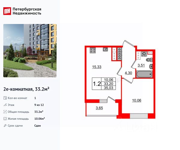 Продаётся 1-комн. квартира площадью 33,9 кв.м на 3 этаже 12 этажного дома (Корпус 6, Секция 1) проекта ПИК Витебский парк. Светлый просторный подъезд на уровне земли, функциональная планировка, большие окна, предчистовая отделка. Жилой квартал "Витебский парк" находится во Фрунзенском районе Санкт-Петербурга, в 15 минутах пешком от метро "Обводный канал". А в 2027 году всего в паре минут от проекта планируют открыть станцию метро "Боровая". В квартал входят 3 детских сада, школа и 7 жилых домов с дворами-парками, куда не могут зайти посторонние люди и заехать автомобили. Школа на 1250 мест и детский сад на 350 мест откроются одновременно с заселением первой очереди, это значит, что жители проекта смогут отдать своих детей в новые образовательные учреждения на территории квартала. Во дворах приятно отдыхать, знакомиться с соседями и даже заниматься йогой, а для детей мы построим детские площадки. Рядом появятся современные спортивные площадки. На первых этажах домов откроются магазины, кафе и другие сервисы. Через весь жилой район протянется широкий пешеходный бульвар для прогулок и спорта. Рядом с "Витебским парком" есть всё для комфортной жизни: магазины, торговые центры, фитнес-клубы, кафе и рестораны, а ещё детские сады, школы, вузы и поликлиника. Артикул 1005100 (Застройщик ООО "СЗ "Лиговский Сити") [cn_sbp_1775997] Продается 1-комнатная квартира в ипотеку в новостройке в Санкт-Петербурге.