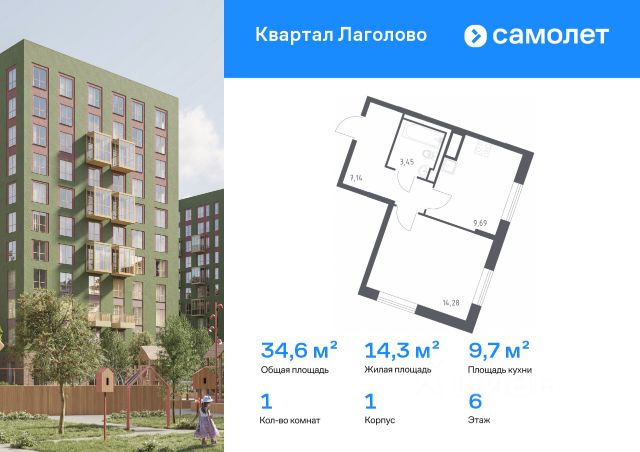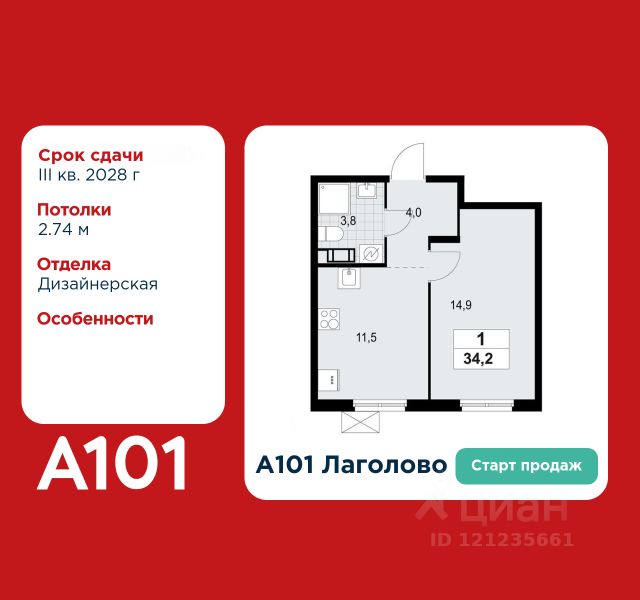 ПЕРЕУСТУПКА ПРАВА! Продаётся квартира в новостройке — ЖК "А101 Лаголово" , корп. 1.1 Общая площадь квартиры — 34,6 кв. м., этаж 3 из 9, секция 1 Без отделки Тип проекта, по которому построен дом — монолит Компания-застройщик — ГК "А101". Срок сдачи — 4-й квартал 2025 ОТДЕЛКА Квартира передается без отделки. Благодаря тому, что в данном типе отделки стены не возводятся, вы сможете создать удобную планировку и самостоятельно организовать зонирование комнат. ОСОБЕННОСТИ ПЛАНИРОВКИ Мезонин - полуэтаж с большим количеством естественного света. На втором уровне можно организовать спальню или кабинет. Патио - это собственный дворик или терраса с выходом из квартиры во двор, огорожен живой изгородью, пол надежно защищен бетонной плитой. ПАРАДНАЯ В каждой парадной предусмотрены места для хранения велосипедов и колясок, гостевой санузел, лапамойка (место для мытья домашних животных или колес велосипедов) и удобная зона ожидания для гостей. ДВОРЫ И ОКРУЖЕНИЕ Просторные дворы свободны от машин и закрыты от посторонних. Большую часть комплекса займут благоустроенные зелёные зоны, теневые сады и городские общественные пространства с развитой тротуарной сетью и велодорожками. Каждый дом оборудован системами видеонаблюдения и контроля доступа. "А101 Лаголово" - современный город у подножия знаменитых Дудерговских высот, в объятиях чистейших озёр и зелёных живописных массивов, наполненный всем необходимым для счастливой жизни. ИНФРАСТРУКТУРА. Мы занимаемся комплексным освоением территории. Наш приоритет - доступность всех сервисов для счастливой жизни. 1. Лаголово-город 15-ти минутной доступности. Вся необходимая инфраструктура: магазины, салоны красоты, образовательные учреждения, медицинские центры находятся в 15-ти минутах пешей прогулки от любой точки жилого комплекса. Это позволяет не тратить время на долгие перемещения. 2. Представьте идеальный город, где ребенок может спокойно играть, а пожилой человек наслаждаться заслуженным отдыхом. Жилая среда нашего комплекса может комфортно использоваться как 8-летним ребенком, так и 80-летним пожилым человеком. Дома, улицы, общественные пространства, тротуары спроектированы с заботой о людях разных возрастов. 3. Мы активно развиваем авторскую образовательную экосистему "Лёрнити". Она включает строительство 8 современных детских садов (2000 мест) и 3 школ (2945 учащихся). Мы учим родителей гармонично общаться с детьми, помогаем малышам подготовиться к школе, а подросткам - выбрать будущую профессию и развить таланты.