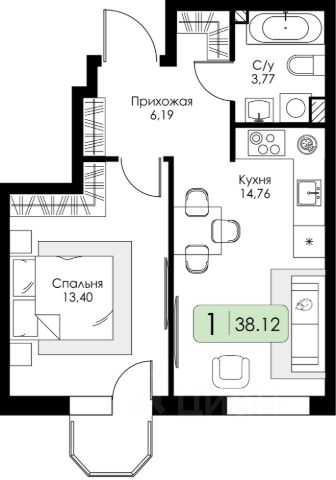 Общая площадь квартиры составляет 64,6 м2 из которых 19,81 м2 отведено под просторную кухню-гостиную с двумя окнами. Мастер спальня 15,5 м2 со своим сан.узлом с окном, и гардеробной. Выделено место под размещение прачечной.