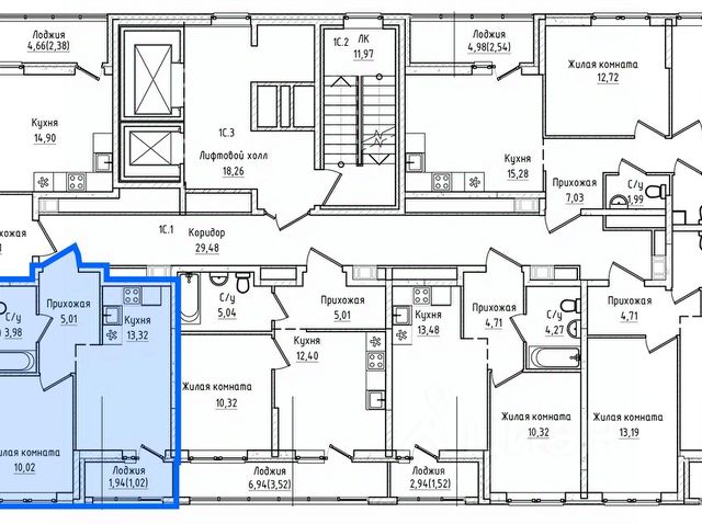• 1-4 комнатные квартиры площадью от 27,1 м² до 42,3 м² м².