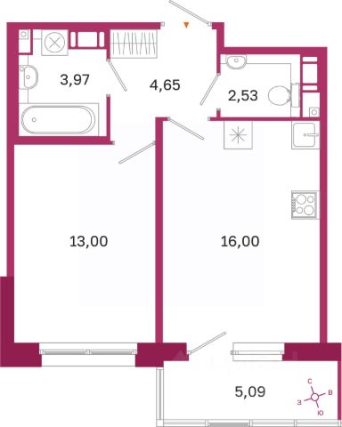 Лучшая планировка из всех однокомнатных квартир комплекса  и лучшее расположение в комплексе.