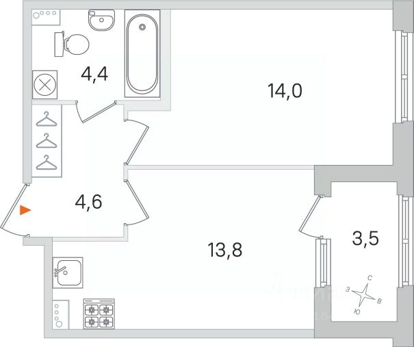 Удачная планировка: просторная комната, совмещенный санузел, просторная прихожая со вместительной гардеробной. Французский балкон.