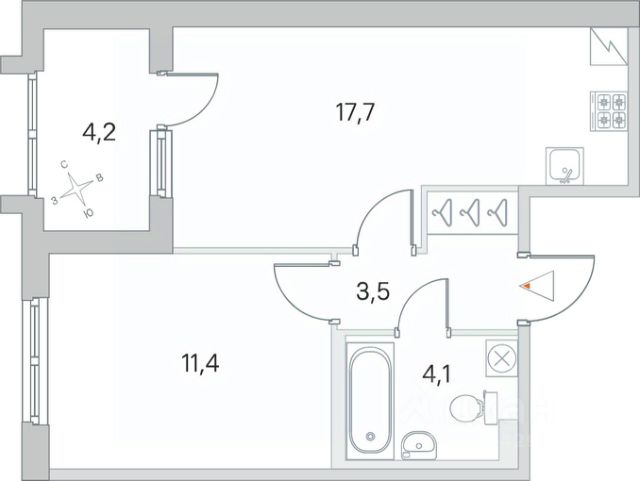 Продается просторная 1-комнатная квартира от застройщика в жилом комплексе "Univer City" в на юге Санкт-Петербурга. До метро можно добраться на транспорте всего за 30 минут. Удобная, классическая, функциональная европланировка, большая кухня-гостиная 17.4 м², вместительная прихожая 4.1 м². Общая площадь квартиры - 35.6 м², жилая 10 м², высота потолка 2.78 м. Квартира продается с отделкой "NORD LINE WHITE". Что особенного в ЖК "Univer City"? • Малоэтажное строительство • Скандинавские фасады с отделкой керамогранитом, акцентные входные группы • Закрытые внутренние дворы без машин • Пешеходный променад с тематическими зонами, еловый сквер и яблоневый сад • Univer Park, включая SetlSport и SetlKids, площадку для выгула собак и зоны отдыха • Инновационный Лицей Setl с оригинальной архитектурной концепцией и уникальной образовательной средой