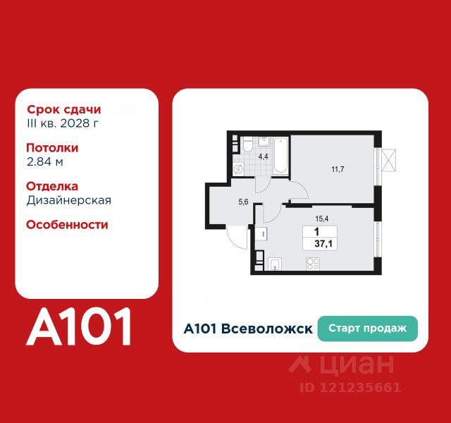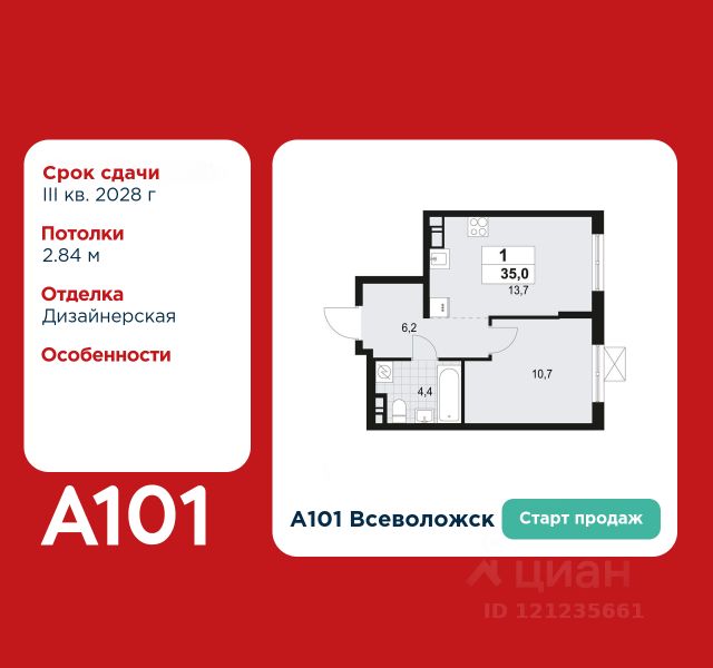 В продаже квартира площадью 35.05 кв. м с отделкой white box на 11 этаже 16 этажного дома. Квартира находится в 4834 корпусе: Жилой комплекс "Ленский" - место, где встречаются природа и городская среда, а умиротворение загородной жизни сочетается с комфортом. Проект располагается на северо-востоке Санкт-Петербурга, в Южном микрорайоне Всеволожска, в 16 км от КАД, с удобным выездом на Колтужское шоссе и Дорогу Жизни. В его состав входят два 18-этажных корпуса с видами на Колтушские высоты, сервисы повседневной инфраструктуры, собственный приватный двор, просторный паркинг для жителей и гостей. Девелопер проекта - федеральный застройщик ГК "Развитие". Транспортная доступность На автомобиле: • 30 мин до станции метро "ул. Дыбенко" • 35 мин до центра Санкт-Петербурга Архитектура Архитектурный облик отличается современным дизайном. Панорамные окна с большой площадью остекления наполняют квартиры светом, актуальная финская технология Peikko защищает квартиры от промерзания даже в северном климате. Дома прочные, долговечные, их конструкция гарантирует тёплый микроклимат зимой, прохладу летом и отличную звукоизоляцию. Планировочные решения Функциональные планировки отличаются простотой и эргономичностью, пространство эффективно используется даже на небольшой площади. К кухне примыкает просторная лоджия с панорамным остеклением, во всех двух- и трехкомнатных квартирах - по два санузла. Все квартиры сдаются с отделкой white box, которая позволяет существенно сократить стоимость и сроки ремонта. По желанию доступны варианты чистовой отделки под ключ: "комфорт" и "бизнес" с использованием современных материалов. Благоустройство - приватный двор без машин; - всесезонное озеленение; - спортивный корт для футбола и баскетбола; - детские площадки с мягким покрытием; - площадка для настольного тенниса; - скамейки и беседки для отдыха по всему периметру; - прогулочные и велосипедные дорожки в тени деревьев; - сквозные парадные с большими окнами; - просторная входная группа на уровне земли; - колясочные помещения; - торговая галерея в шаговой доступности. Окружение - 5 парков: заповедник "Колтушские высоты", парк "Софиевка", "Румболовский", "Кенша", Державинский и Алексеевский парки. За 5-10 минут можно добраться транспортом до Песчанки и Петропавловского парка. Ковалевский лесопарк выделяется прекрасными экотропами, зонами для пикников и велодорожками, а Ждановские озера - благоустроенными пляжами; - рядом Колтушинский фреш-маркет с фермерскими продуктами и крупный ТЦ "Юбилейный", где работают более 70 магазинов, кинотеатр и фуд-корт; - 10 детских садов, начальная и средняя школы, центры дополнительного образования, творческие секции; - в ближайшей доступности фитнес-центры, бассейн, теннисный клуб и даже центр верховой езды; - культурные и знаковые места: Музей-усадьба "Приютино", музей "Дом Авиаторов", мемориальный комплекс "Дорога Жизни", многочисленные пешеходные маршруты. Продам 1-комнатную квартиру в новостройке с отделкой в Всеволожске.