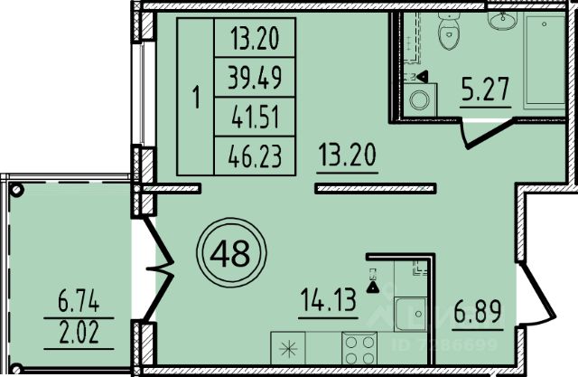 Продается квартира 723, по адресу г. Санкт-Петербург, поселок Шушары, Чудовская улица, дом 14, корпус 1, строение 1, корпус ЖК Монография в Монография на 6 этаже, с площадью 42.9 м2.