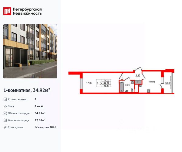 Продается уютная 1-комнатная квартира от застройщика в жилом комплексе "Univer City" в на юге Санкт-Петербурга. До метро можно добраться на транспорте всего за 30 минут. Удобная, классическая планировка, кухня 10 м², вместительная прихожая 3.95 м². Общая площадь квартиры - 34.92 м², жилая 17.02 м², высота потолка 2.77 м. Квартира продается с отделкой "NORD LINE WHITE". Что особенного в ЖК "Univer City"? • Малоэтажное строительство • Скандинавские фасады с отделкой керамогранитом, акцентные входные группы • Закрытые внутренние дворы без машин • Пешеходный променад с тематическими зонами, еловый сквер и яблоневый сад • Univer Park, включая SetlSport и SetlKids, площадку для выгула собак и зоны отдыха • Инновационный Лицей Setl с оригинальной архитектурной концепцией и уникальной образовательной средой