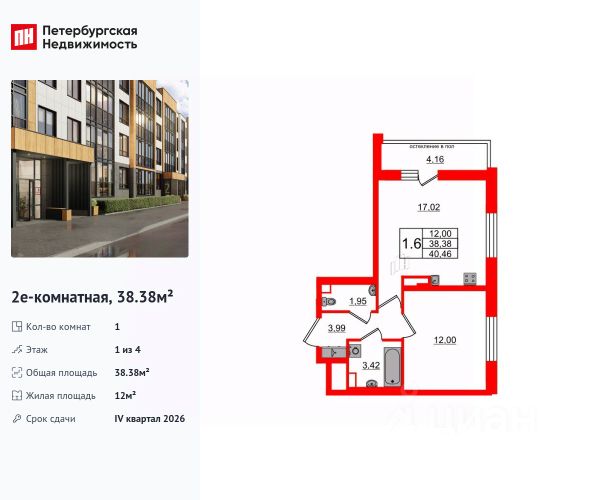 Продается просторная 1-комнатная квартира от застройщика в жилом комплексе "Univer City" в на юге Санкт-Петербурга. До метро можно добраться на транспорте всего за 30 минут. Удобная, классическая, функциональная европланировка, большая кухня-гостиная 17.02 м², вместительная прихожая 3.99 м². Общая площадь квартиры - 38.38 м², жилая 12 м², высота потолка 2.77 м. Квартира продается с отделкой "NORD LINE WHITE". Что особенного в ЖК "Univer City"? • Малоэтажное строительство • Скандинавские фасады с отделкой керамогранитом, акцентные входные группы • Закрытые внутренние дворы без машин • Пешеходный променад с тематическими зонами, еловый сквер и яблоневый сад • Univer Park, включая SetlSport и SetlKids, площадку для выгула собак и зоны отдыха • Инновационный Лицей Setl с оригинальной архитектурной концепцией и уникальной образовательной средой