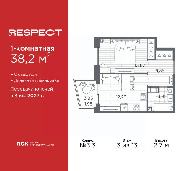 Квартира с одной спальней в комплексе "Сампсониевский 32" от LEGENDA на 7 этаже. -Общая площадь: 44.94 кв.м. -Жилая: 12.65 кв.м. -Площадь просторной кухни-столовой: 21.38 кв.м. -Высота потолков 2.7 м. Все окна выходят на одну сторону. В квартире один раздельный санузел. ЖК "Сампсониевский, 32" квартал бизнес-класса в Выборгском районе Санкт-Петербурга недалеко от набережной Большой Невки и Петроградской стороны. Отличают комплекс каскадные фасады с большой площадью остекления, видовые квартиры с террасами. Современные инженерные и технические решения, повышающие качество жизни TechnoBox включают в себя: стационарный и удаленный контроль дома, систему Air Design, обеспечивающую чистый воздух без лишнего шума, мультисервисную сеть, объединяющую коммуникационные системы. Квартиры сдаются с предчистовой отделкой: выровнены пол и стены, проведена электрика, предусмотрена шумоизоляция, встроенная система вентиляции. В каждой квартире установлена взломостойкая входная дверь, окна со специальным термоизолированным алюминиевым профилем. В ЖК "Сампсониевский, 32" много вариантов планировок: квартиры с террасой, мастер-спальней, ванной комнатой с окном, гардеробной комнатой. Двор закрыт от транспорта, здесь будут зоны с дизайнерским оформлением для игр и отдыха. Срок сдачи 4 квартал 2026 года. В отапливаемом подземном паркинге 298 мест, спуститься туда можно на лифте из своей квартиры. Комплекс находится на границе крупных районов, рядом с набережными, которые ведут в Приморский, Калининский и Центральный районы, а через Сампсониевский, Гренадёрский и Кантемировский мосты можно попасть в Петроградский район. До станции метро "Выборгская" 900 м, до станции метро "Петроградская" 2,6 км. Финляндский вокзал находится в 2,5 км от ЖК, а Западный скоростной диаметр (ЗСД) в 10 км. Рядом с ЖК находится несколько гимназий, общеобразовательных школ и детских садов. Здесь много медицинских учреждений, кафе, ресторанов, торговых центров, гипермаркетов. Меньше чем в 1 км от ЖК Сампсониевский и Выборгский сады, а в 2 км находится Ботанический сад, набережная реки Карповки с качелями и зонами отдыха у воды.