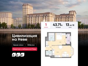 Цена действует при 100% оплате и на определенные ипотечные программы. Подробности — в отделе продаж по телефону. Продаётся 1-комнатная квартира в ЖК "Цивилизация на Неве" на 3 этаже. Общая площадь составляет 38.50 кв. м. Квартира с white box отделкой. Жилой комплекс "Цивилизация на Неве" располагается по адресу Санкт-Петербург, Невский. "Цивилизация на Неве" - видовые дома бизнес-класса, расположенные вдоль набережной Невы, всего в 7 км от исторического центра. Жилой комплекс идеально выражает особый дух, свойственный знаменитым просторным кварталам постройки сталинской эпохи в Москве и на Московском проспекте в Петербурге. Расположение: • 15 мин на авто до Невского проспекта; • 15 мин на авто до Московского вокзала; • 5 мин на авто до станции метро "Улица Дыбенко"; • 14 мин (7 км) до КАД. Уникальный дизайн входных зон, закрытая территория, видеонаблюдение и охрана, подземный паркинг с лифтом и другие особенности проекта отвечают заявленному классу. В каждом дворе предусмотрено озеленение по индивидуальному ландшафтному проекту с благородными растениями и кустарниками. Преимущества: • Закрытая территория с видеонаблюдением; • Подземный паркинг с лифтом; • Детская площадка на приватной безопасной территории; • Несколько детских садов и школ; • Инфраструктура шаговой доступности на первых этажах корпусов. Успейте приобрести квартиру на выгодных условиях! Чтобы узнать подробности, обращайтесь за консультацией по телефону. 1-комнатная квартира в новостройке с отделкой в муниципальном округе № 54 в Санкт-Петербурге.