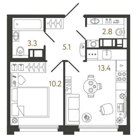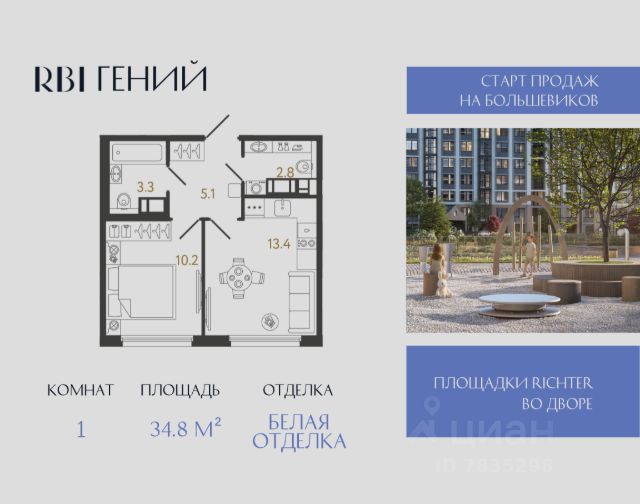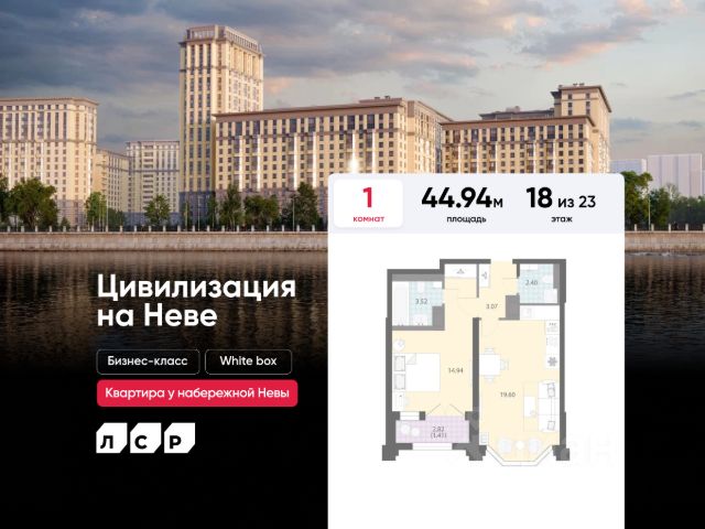 Цена действует при 100% оплате и на определенные ипотечные программы. Подробности — в отделе продаж по телефону. Продаётся 1-комнатная квартира в ЖК "Цивилизация на Неве" на 3 этаже. Общая площадь составляет 38.50 кв. м. Квартира с white box отделкой. Жилой комплекс "Цивилизация на Неве" располагается по адресу Санкт-Петербург, Невский. "Цивилизация на Неве" - видовые дома бизнес-класса, расположенные вдоль набережной Невы, всего в 7 км от исторического центра. Жилой комплекс идеально выражает особый дух, свойственный знаменитым просторным кварталам постройки сталинской эпохи в Москве и на Московском проспекте в Петербурге. Расположение: • 15 мин на авто до Невского проспекта; • 15 мин на авто до Московского вокзала; • 5 мин на авто до станции метро "Улица Дыбенко"; • 14 мин (7 км) до КАД. Уникальный дизайн входных зон, закрытая территория, видеонаблюдение и охрана, подземный паркинг с лифтом и другие особенности проекта отвечают заявленному классу. В каждом дворе предусмотрено озеленение по индивидуальному ландшафтному проекту с благородными растениями и кустарниками. Преимущества: • Закрытая территория с видеонаблюдением; • Подземный паркинг с лифтом; • Детская площадка на приватной безопасной территории; • Несколько детских садов и школ; • Инфраструктура шаговой доступности на первых этажах корпусов. Успейте приобрести квартиру на выгодных условиях! Чтобы узнать подробности, обращайтесь за консультацией по телефону. 1-комнатная квартира в новостройке с отделкой в муниципальном округе № 54 в Санкт-Петербурге.