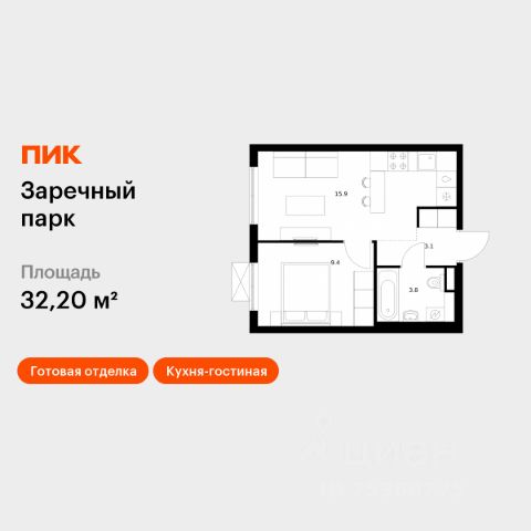 Продаётся 1-комн. квартира площадью 32,2 кв.м на 12 этаже 24 этажного дома (Корпус 5, Секция 2) проекта ПИК Заречный парк. Светлый просторный подъезд на уровне земли, функциональная планировка, большие окна, c отделкой. Жилой квартал "Заречный парк" расположен в районе Новое Девяткино Ленинградской области. В 7 минутах на автомобиле - станция метро "Девяткино", до КАД - 10 минут на машине. В 2026 году будет достроена шестиполосная трасса в обход Мурино, примыкающая к Пискарёвскому проспекту. Она станет дополнительным выездом на КАД для жителей "Заречного парка". Проект включает восемь домов высотой от 15 до 24 этажей, три многоуровневых паркинга, детский сад и школу. В зелёных дворах-парках будут оборудованы современные детские и спортивные площадки, обустроены места для отдыха. На первых этажах разместятся магазины, кафе и другие сервисы. Планировки продуманы так, чтобы каждый квадратный метр жилой площади можно было эффективно использовать. Все квартиры сдаются с готовой отделкой. Артикул 1021908 (Застройщик ООО "СПЕЦИАЛИЗИРОВАННЫЙ ЗАСТРОЙЩИК ИНВЕСТАЛЬЯНС") [cn_sbp_1801936] 1-комнатная квартира в новостройке с отделкой рядом с метро Академическая.