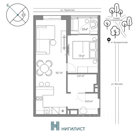 Продаётся 1-комнатная квартира в строящемся доме (Корпус 2), срок сдачи: I-кв. 2028, общей площадью 17.81 кв.м., на 4 этаже. Новый жилой дом от застройщика "СЗ БЛЭКСМИТ" расположен по адресу: Санкт-Петербург, Улица Фучика, д. 17, литера В.