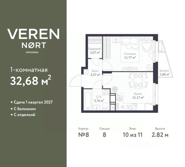 Идеальный вариант для одного человека или молодой семьи. Кухня имеет среднюю площадь. Уютная комната правильной геометрии. В прихожей помещается система хранения. Напрямую продаётся 1 комнатная квартира 167 на 2 этаже (из 8) общей площадью 31,29 м2 в III очереди в жилом комплексе Сертолово Парк от застройщика ГК Алгоритм. Все квартиры в ЖК Сертолово Парк сдаются с чистовой отделкой в скандинавском стиле. Въезжайте и живите без дополнительных затрат на ремонт. Увеличенные оконные проемы и потолки высотой 2,74 м придают квартирам в ЖК Сертолово Парк ощущение простора, обеспечивая максимальное естественное освещение и свежий воздух. Энергосберегающий дом строится по финским технологиям: наружные стены изготовлены из заводских трехслойных железобетонных панелей толщиной 390 мм, фасады утеплены - толщина утеплителя 150 мм - и закрыты декоративным слоем -толщина 90 мм. Расположение ЖК: идеальное место для комфортной жизни в городе Сертолово. В 200 метрах находится детская и взрослая поликлиники. Вблизи детские сады и школы. ЖК Сертолово Парк окружен прекрасным лесным массивом, что создает уникальную атмосферу спокойствия и природной красоты прямо за порогом вашего дома. Для детей и взрослых на территории ЖК имеются детские и спортивные площадки. Кроме того, чтобы обеспечить безопасность и уединенность, территория жилого комплекса полностью закрыта. Крытый многоуровневый наземный паркинг с грузовым лифтом. Закрытая территория жилого комплекса с круглосуточным видеонаблюдением. Звоните! Ответим на все вопросы. Продается 1-комнатная квартира в новостройке с отделкой рядом с метро Парнас.