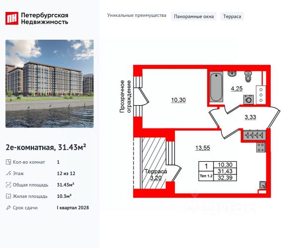 Продается 1-комнатная квартира в ЖК "Дыбенко Парк" на 2 этаже. Общая площадь составляет 34.10 кв. м. Квартира с чистовой отделкой. Жилой комплекс располагается по адресу Санкт-Петербург, проспект Товарищеский. Новый проект комфорт плюс-класса, расположенный в пешей доступности от станции метро "Улица Дыбенко". В проекте предусмотрен широкий выбор планировочных решений: от функциональных студий до просторных двух - и трехкомнатных квартир с мастер-спальнями и балконами. Также доступны лоты с двумя окнами на кухне/в спальне. Все квартиры сдаются с чистовой отделкой в двух цветовых решениях - Comfort Stone и Comfort Wood. Развитая социальная инфраструктура, налаженная транспортная система, близость к паркам и торговым центрам - здесь созданы все условия для активной городской жизни. Возле дома появится отдельно стоящий 9-этажный паркинг на 331 машиноместо. Двор жилого комплекса будет закрытым. Центральное место благоустроенной территории займет детская зона, которая будет отделена от зоны отдыха и спортивной площадки зелеными насаждениями. Расположение: • 10 мин на авто до Октябрьской набережной; • 15 мин пешком до метро Улица Дыбенко; • 15 мин пешком до парка им.Есенина. • 15 мин на авто до Мега-Дыбенко; • 30 мин на авто до центра Санкт-Петербурга. Данная локация станет отличным выбором для семей с детьми. Рядом с "Дыбенко Парком" уже сейчас функционирует множество школ и детских садов, медицинских центров и магазинов. Дополнительно на первом этаже дома откроют детский сад на 65 мест и просторный кабинет врача общей практики. Дома оборудованы самыми современными инженерными системами и "Умным домом". Преимущества: • Высота потолков от 2,7м • Уникальные планировки с балконами; • Закрытая территория; • Система "Умный дом"; • Кладовые в подвале и на этаже; • Колясочная в парадной; • Видеонаблюдение в холлах, на первом этаже, в лифтах и в паркингах. Успейте приобрести квартиру на выгодных условиях! Чтобы узнать подробности, обращайтесь за консультацией по телефону. 1-комнатная квартира в новостройке с отделкой в районе Невский в Санкт-Петербурге.