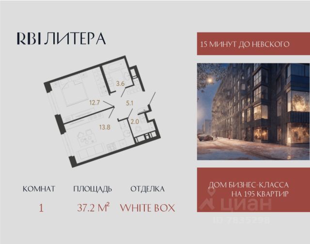 Клубный дом "Литера" от RBI. Новая "Литера" вашей жизни Камерный проект бизнес-класса на 195 квартир строится в 6 минутах от метро "Елизаровская" в непосредственной близости от исторического и делового центра Петербурга. Дом располагается в 700 м от набережной Невы по Большому Смоленскому проспекту: встречать рассветы и провожать закаты, наслаждаясь захватывающей панорамой города и зелёным окружением Невского района, можно из окон собственной квартиры! До Московского вокзала и центральной части Невского проспекта — 15 минут с учётом пешей прогулки до "Елизаровской" от дома. Добраться на автомобиле можно за то же время. До аэропорта "Пулково" 23 км. Дом состоит из двух 12-этажных секций, которые располагаются друг напротив друга, и ещё двух 8-этажных. Вместе секции образуют букву "Л" — форма дома отсылает к его названию. Планировки — от студий до просторных евро-четырёхкомнатных. Площадь квартир — от 24 до 121 м², высота потолков на типовых этажах — 2,8 м. На верхних этажах располагаются квартиры с террасами. Для романтиков — квартиры с эркерами. Для ценителей функциональных планировок — квартиры с выделенной рабочей зоной кухни и большой гостиной-столовой, планировки с мастер-спальнями и гардеробными. Ритмичную архитектуру в стиле лофт дополняют характерные "литеры" эркеров. Основной объём внешних фасадов из красного кирпича обеспечивается за счёт фламандской 3D-кладки и декоративных рустов. Со двора фасады выполнены в светлых тонах — чтобы усилить ощущение простора и безопасности. Единая дизайн-концепция продолжается в лобби дома. Сочетание тёплого кирпича с холодным металлом и стеклом создаёт харизматичное, брутальное настроение интерьера парадной группы. Чёткость вертикальных объёмов смягчается округлыми формами стойки ресепшн и декоративных куртин, а большие витражные окна создают иллюзию бесконечности пространства. Придать мыслям стройную форму можно будет в специально оборудованной зоне коворкинга только для жителей. Здесь же в лобби со свободным Wi-Fi появится зона ожидания для гостей и уникальный арт-объект от Владимира Абиха. Диптих из объёмных оттисков друг друга при наложении образует единое целое и запечатывает в себе фразу "Между нами". Эта инсталляция — метафора общности между нами, воплощение в искусстве объективной истины о том, что хотя вокруг много людей, лишь с немногими ощущаешь неподдельную связь и самого себя кем-то цельным. Вход на приватную территорию — по электронному ключу бесконтактного доступа. Во дворе высадят взрослые деревья и цветущие растения, оборудуют зону для занятий спортом, места отдыха для взрослых и экологичную детскую площадку с развивающими элементами для малышей и подростков. Двор без машин — можно отпускать детей на прогулки и не переживать за их безопасность. Для жителей оборудуют тёплый подземный паркинг, велопарковки и колясочные. На охраняемой территории у дома появится гостевая стоянка. Дом "Литера". Для авторов своей жизни 1-комнатная квартира в новостройке с отделкой в районе Невский в Санкт-Петербурге.