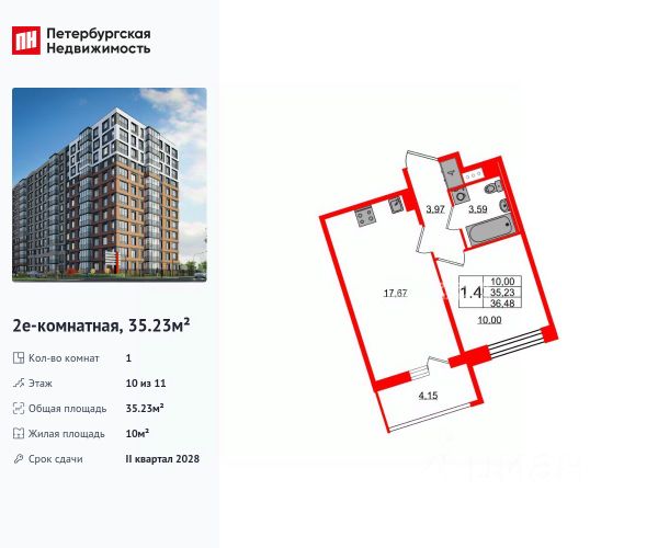 Цена действует при 100% оплате и на определенные ипотечные программы. Подробности — в отделе продаж по телефону. Продаётся 1-комнатная квартира в ЖК "Цивилизация на Неве" на 3 этаже. Общая площадь составляет 38.50 кв. м. Квартира с white box отделкой. Жилой комплекс "Цивилизация на Неве" располагается по адресу Санкт-Петербург, Невский. "Цивилизация на Неве" - видовые дома бизнес-класса, расположенные вдоль набережной Невы, всего в 7 км от исторического центра. Жилой комплекс идеально выражает особый дух, свойственный знаменитым просторным кварталам постройки сталинской эпохи в Москве и на Московском проспекте в Петербурге. Расположение: • 15 мин на авто до Невского проспекта; • 15 мин на авто до Московского вокзала; • 5 мин на авто до станции метро "Улица Дыбенко"; • 14 мин (7 км) до КАД. Уникальный дизайн входных зон, закрытая территория, видеонаблюдение и охрана, подземный паркинг с лифтом и другие особенности проекта отвечают заявленному классу. В каждом дворе предусмотрено озеленение по индивидуальному ландшафтному проекту с благородными растениями и кустарниками. Преимущества: • Закрытая территория с видеонаблюдением; • Подземный паркинг с лифтом; • Детская площадка на приватной безопасной территории; • Несколько детских садов и школ; • Инфраструктура шаговой доступности на первых этажах корпусов. Успейте приобрести квартиру на выгодных условиях! Чтобы узнать подробности, обращайтесь за консультацией по телефону. 1-комнатная квартира в новостройке с отделкой в районе Невский в Санкт-Петербурге.