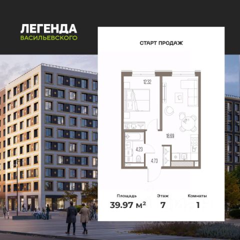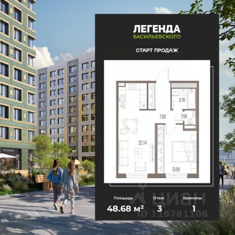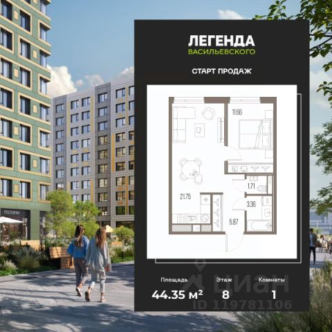 Продается 1-комн. квартира от застройщика с предчистовой отделкой в ЖК "ЛЕГЕНДА Васильевского" на 10 этаже. Общая площадь: 34.94 кв.м., жилая: 10.14 кв.м., площадь просторной кухни-столовой: 15.49 кв.м. Все окна выходят на одну сторону. В квартире один совмещенный санузел. Высота потолков 2.7 м. "ЛЕГЕНДА Васильевского" жилой квартал в минутной доступности от Финского залива, главного креативного хаба Санкт-Петербурга Севкабель Порта и других точек притяжения. Современные инженерные и технические решения, повышающие качество жизни TechnoBox включают в себя: стационарный и удаленный контроль дома, систему вентиляции Air Design - здоровое дыхание без лишнего шума, мультисервисную сеть, объединяющую коммуникационные системы, удаленное управление электроприборами, контроль отопления в каждом помещении, поддерживающий оптимальный температурный баланс во время "холодного" периода", датчики протечки, датчик открытия входной двери. Мультисервисная сеть (МСС) объединяет ключевые слаботочные системы дома, задавая им единый высокий стандарт работы, обеспечивая надёжность их функционирования и управления. Квартира готова к декорированию. Застройщиком сделана шумоизоляция; стены подготовлены для отделки; проведена электрика с учетом рекомендаций по расстановке мебели и бытовой техники; выровнен пол. В каждой квартире установлена взломостойкая входная дверь, окна со специальным термоизолированным алюминиевым профилем. Двор жилого комплекса "ЛЕГЕНДА Васильевского" закрыт. Проект состоит из шести разноформатных корпусов с ритмичными фасадами в духе пост-конструктивизма. Геометрия жилого комплекса состоит из четко простроенных осей, чередующих открытые пространства и объемы корпусов, каждый из которых обладает своим визуальным кодом индивидуальным рисунком фасада и цветовой палитрой. Корпуса образуют периметр с общественными пространствами: площадью с кафе, магазинами и пешеходным променадом с детскими игровыми хабами, местами для спокойного отдыха и workout-зоной. На территории комплекса предусмотрены теплый подземный паркинг и два наземных 4-х этажных паркинга. Продается 1-комнатная квартира в новостройке с отделкой в округе Гавань в Санкт-Петербурге.