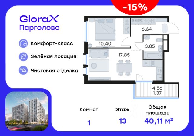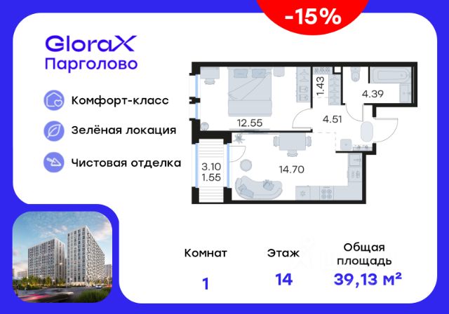 Дом сдан. Ключи сразу. Ипотека с господдержкой. Продается однокомнатная квартира общей площадью 39.2 м2 (чистовую отделку можно заказать дополнительно). Классическая планировка с большой комнатой, порядка 15-ти м2, с выходом на лоджию. За счет штульповых дверей в комнате больше света и ощущения пространства. Отсюда открывается великолепный вид на Шуваловский парк. При желании часть комнаты, примыкающую к 5-метровой прихожей, можно превратить в гардеробную. Кухня (12.5 м2) позволит с удобством готовить и принимать гостей. Совмещенный санузел имеет достаточно большую площадь, тут хватит места и для сантехники, и для стиральной машины. Дом расположен на закрытой территории, оборудованной системой видеонаблюдения. В благоустроенном дворе высажены растения, сделаны детские и спортивные площадки, оборудованы зоны для отдыха и прогулок. На первых этажах предусмотрены коммерческие помещения. На территории ЖК расположен трехэтажный торговый центр. Жилой комплекс построен по монолитной технологии, срок службы составляет 150 лет. ЖК уже сдан и заселяется, выдаются ключи. ЖК находится в шаговой доступности от метро "Парнас", при этом в стороне от массовой застройки. Автомобилисты оценят удобные выезды на крупные магистрали: КАД, Выборгское ш-се и пр. Энгельса. Инфраструктура микрорайона давно сложилась: здесь множество детских, медицинских и торгово-развлекательных и прочих объектов, обеспечивающих комфортный образ жизни. Настоящей жемчужиной района является Шуваловский парк. Это красивое и экологически чистое место с обилием достопримечательностей входит в Список всемирного наследия ЮНЕСКО. Довольно близко находится всесезонный курорт "Охта-Парк", в пределах часа можно доехать до одного из самых живописных мест Ленобласти - Карельского перешейка. Продается 1-комнатная квартира в новостройке с отделкой в микрорайоне Парголово в Санкт-Петербурге.