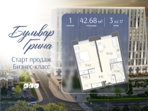 просторная кухня-гостиная 17,6 м² — сердце квартиры, где легко разместится обеденная зона, диван, медиа-зона;